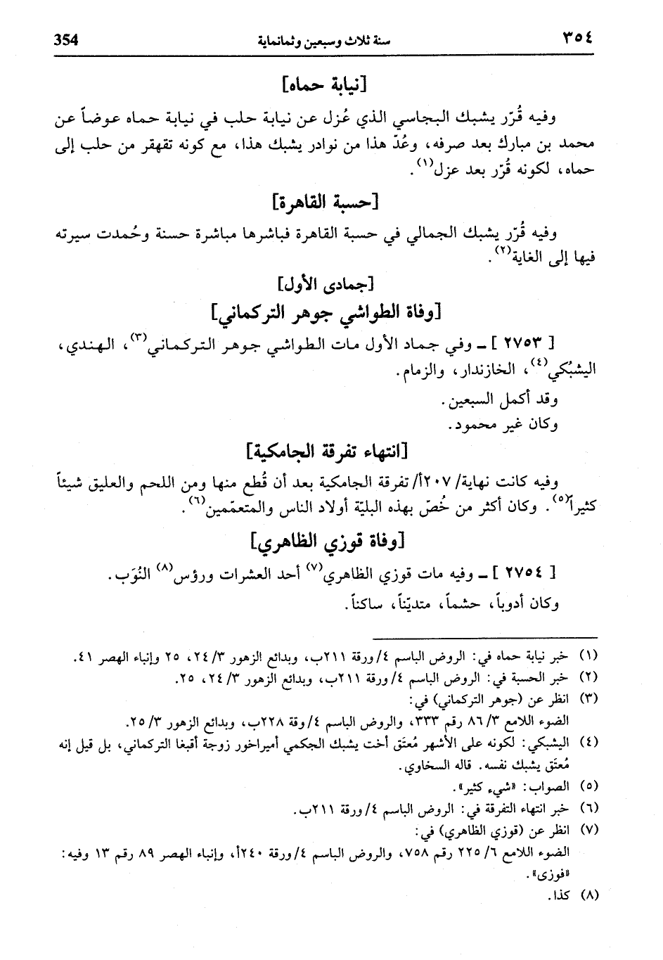 (¬3) انظر عن (جوهر التركماني) في: الضوء اللامع 3/ 86 رقم 333، والروض الباسم 4 / وقة 228 ب، وبدائع الزهور 3/ 25.