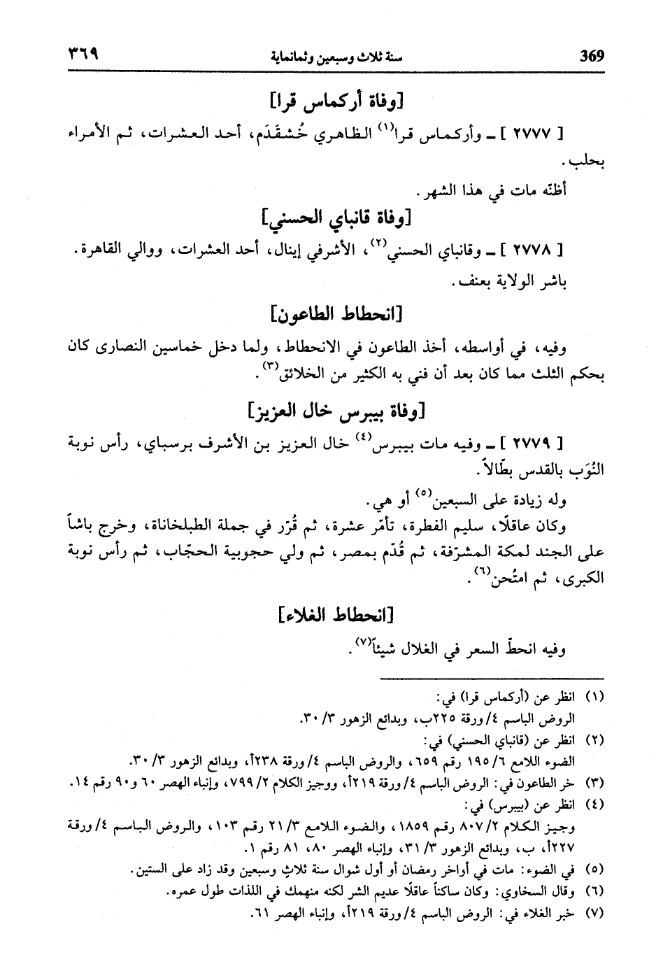 (¬3) خر الطاعون في: الروض الباسم 4 / ورقة 219 أ، ووجيز الكلام 2/ 799، وإنباء الهصر 60 و 90 رقم 14.