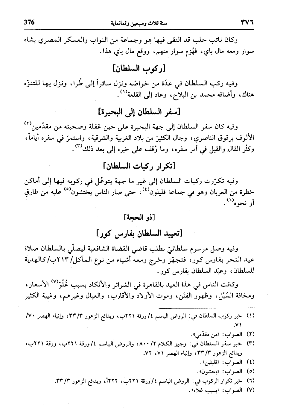 (¬6) خبر تكرار الركوب في: الروض الباسم 4 / ورقة 221 ب، 222 أ، وبدائع الزهور 3/ 33.