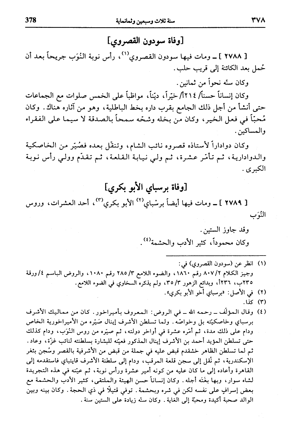 [2789]- ومات فيها أيضا برسباي (¬2) الأبو بكري (¬3)، أحد العشرات، وروس النوب.