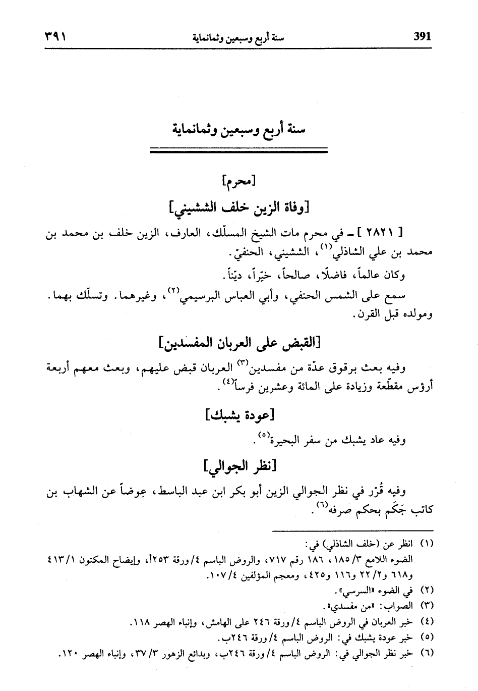 (¬6) خبر نظر الجوالي في: الروض الباسم 4 / ورقة 246 ب، وبدائع الزهور 3/ 37، وإنباء الهصر 120.