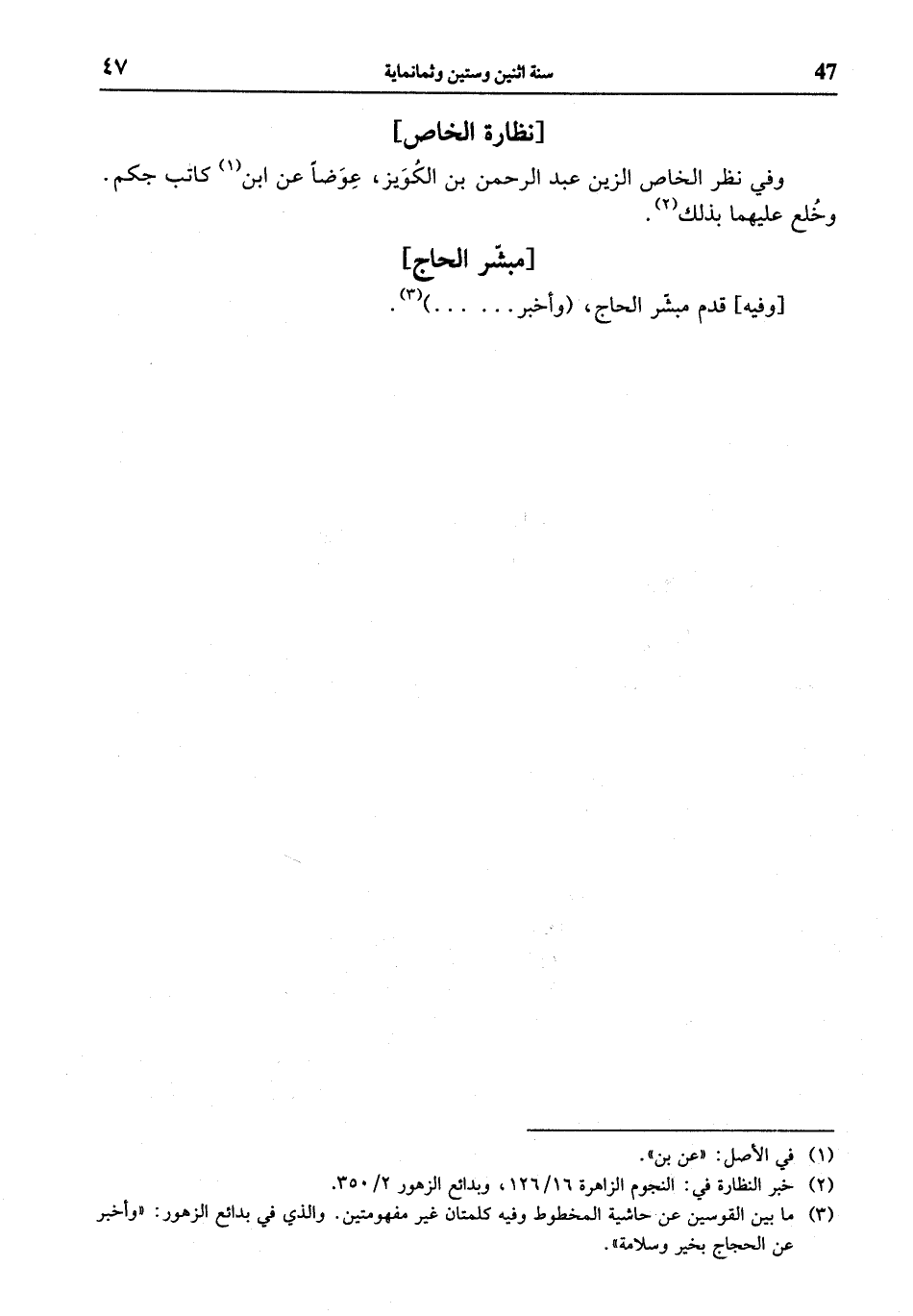 (¬2) خبر النظارة في: النجوم الزاهرة 16/ 126، وبدائع الزهور 2/ 350.