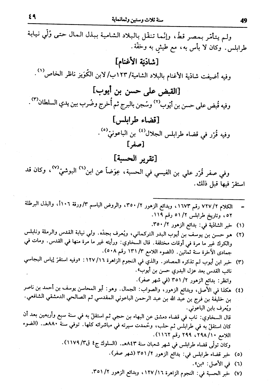 (¬5) خبر قضاء طرابلس في: بدائع الزهور 2/ 351 (شهر صفر).