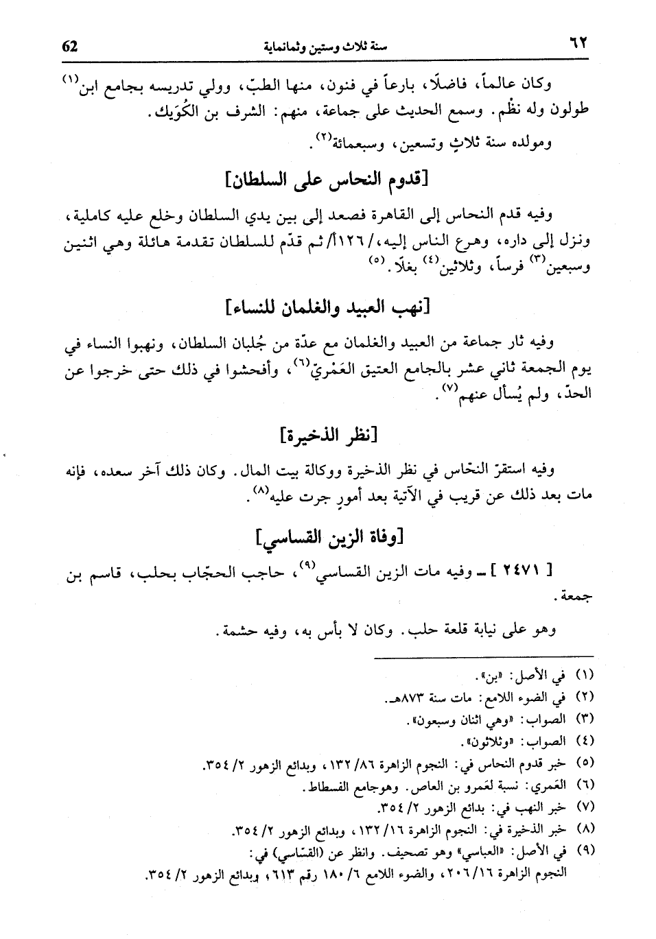 (¬5) خبر قدوم النحاس في: النجوم الزاهرة 86/ 132، وبدائع الزهور 2/ 354.
