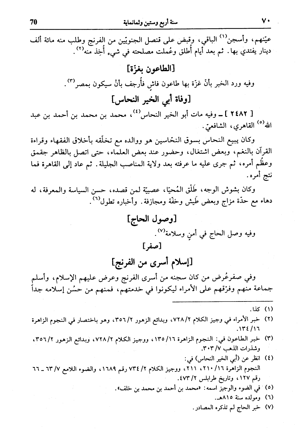 (¬4) انظر عن (أبي الخير النحاس) في: النجوم الزاهرة 16/ 210، 211، ووجيز الكلام 2/ 734 رقم 1689، والضوء اللامع 7/ 63 - 66 رقم 127، وتاريخ طرابلس 2/ 473.