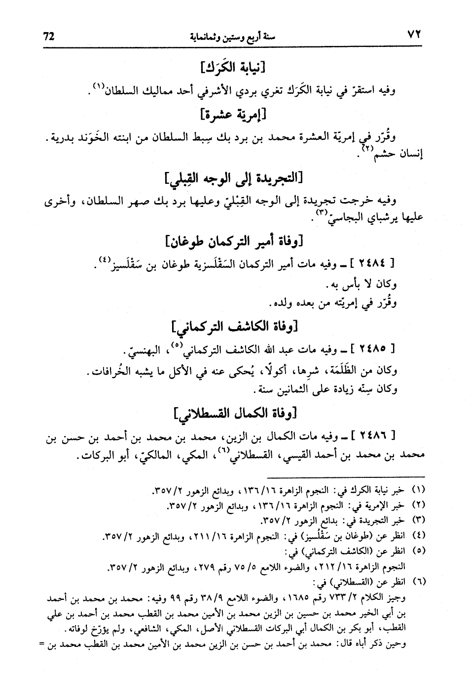 (¬5) انظر عن (الكاشف التركماني) في: النجوم الزاهرة 16/ 212، والضوء اللامع 5/ 75 رقم 279، وبدائع الزهور 2/ 357.