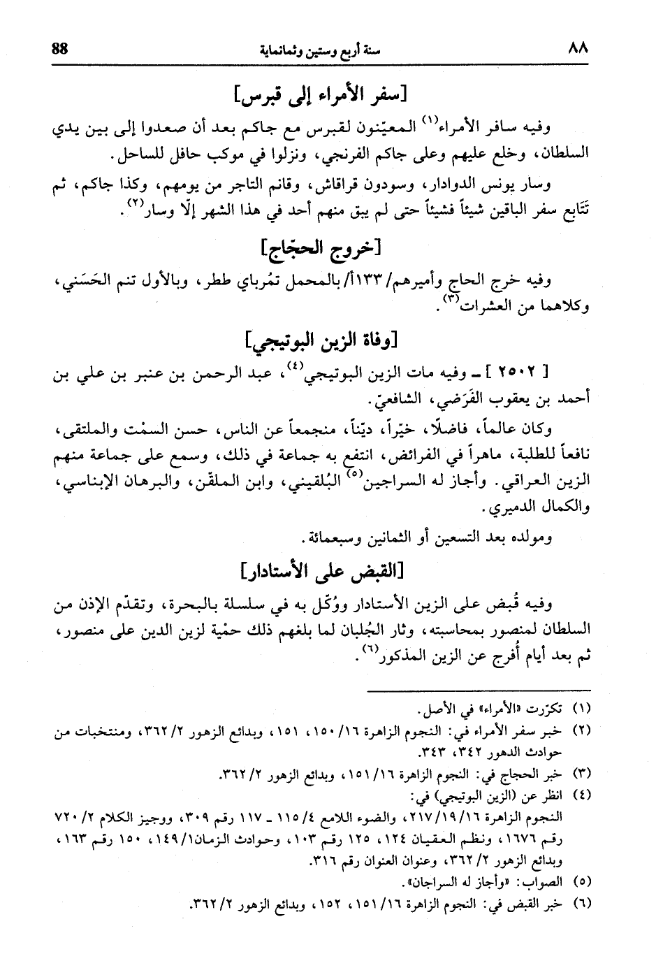 (¬2) خبر سفر الأمراء في: النجوم الزاهرة 16/ 150، 151، وبدائع الزهور 2/ 362، ومنتخبات من حوادث الدهور 342، 343.