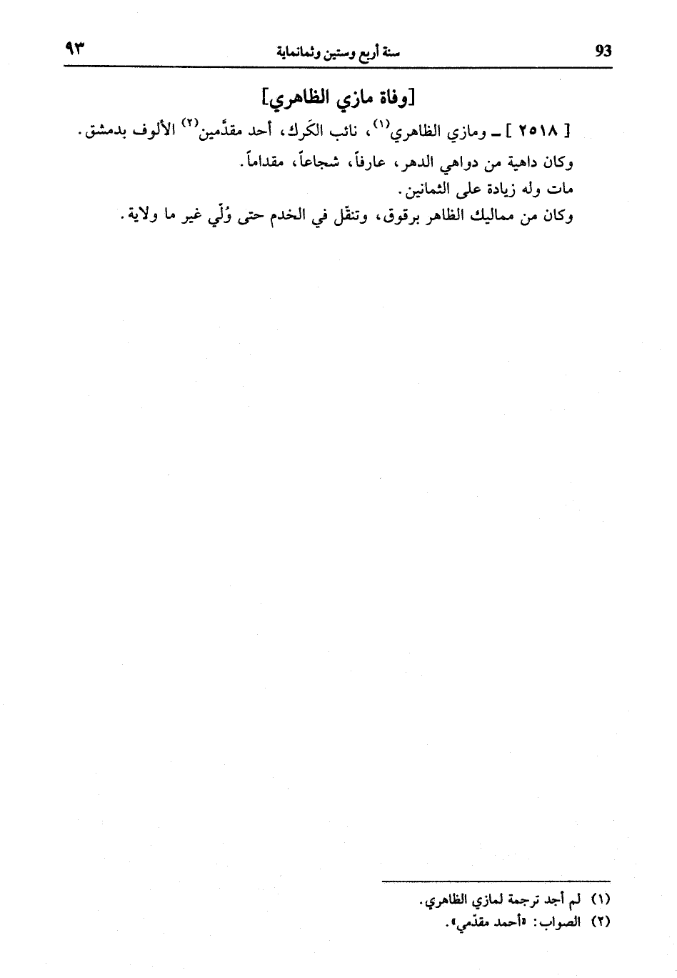 [2518]- ومازي الظاهري (¬1)، نائب الكرك، أحد مقدّمين (¬2) الألوف بدمشق. وكان داهية من دواهي الدهر، عارفا، شجاعا، مقداما.