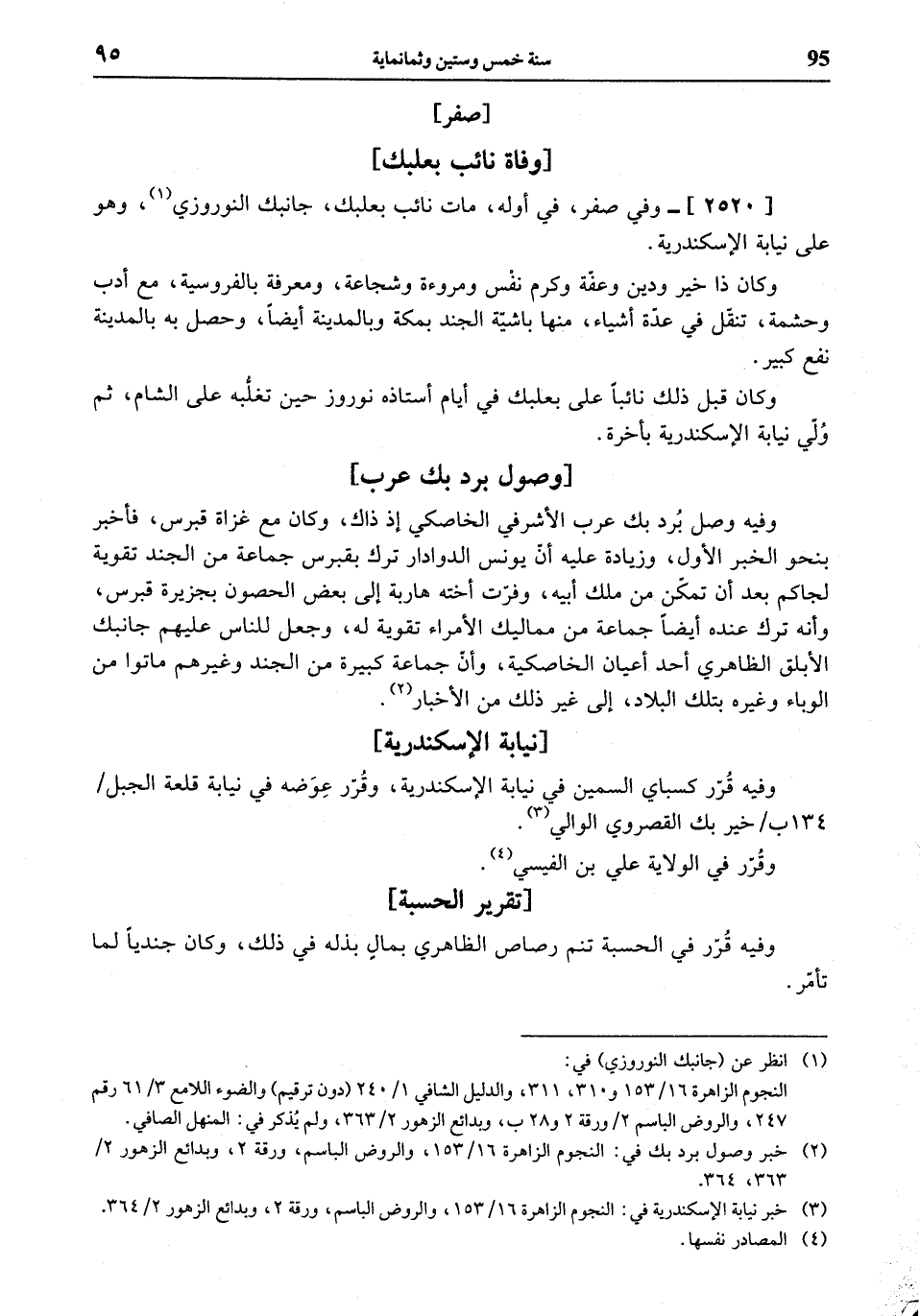 (¬3) خبر نيابة الإسكندرية في: النجوم الزاهرة 16/ 153، والروض الباسم، ورقة 2، وبدائع الزهور 2/ 364.