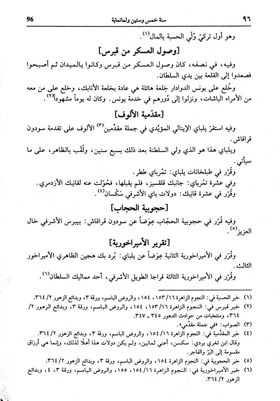 (¬5) خبر الحجوبية في: النجوم الزاهرة 154، والروض الباسم، ورقة 3، وبدائع الزهور 2/ 364.