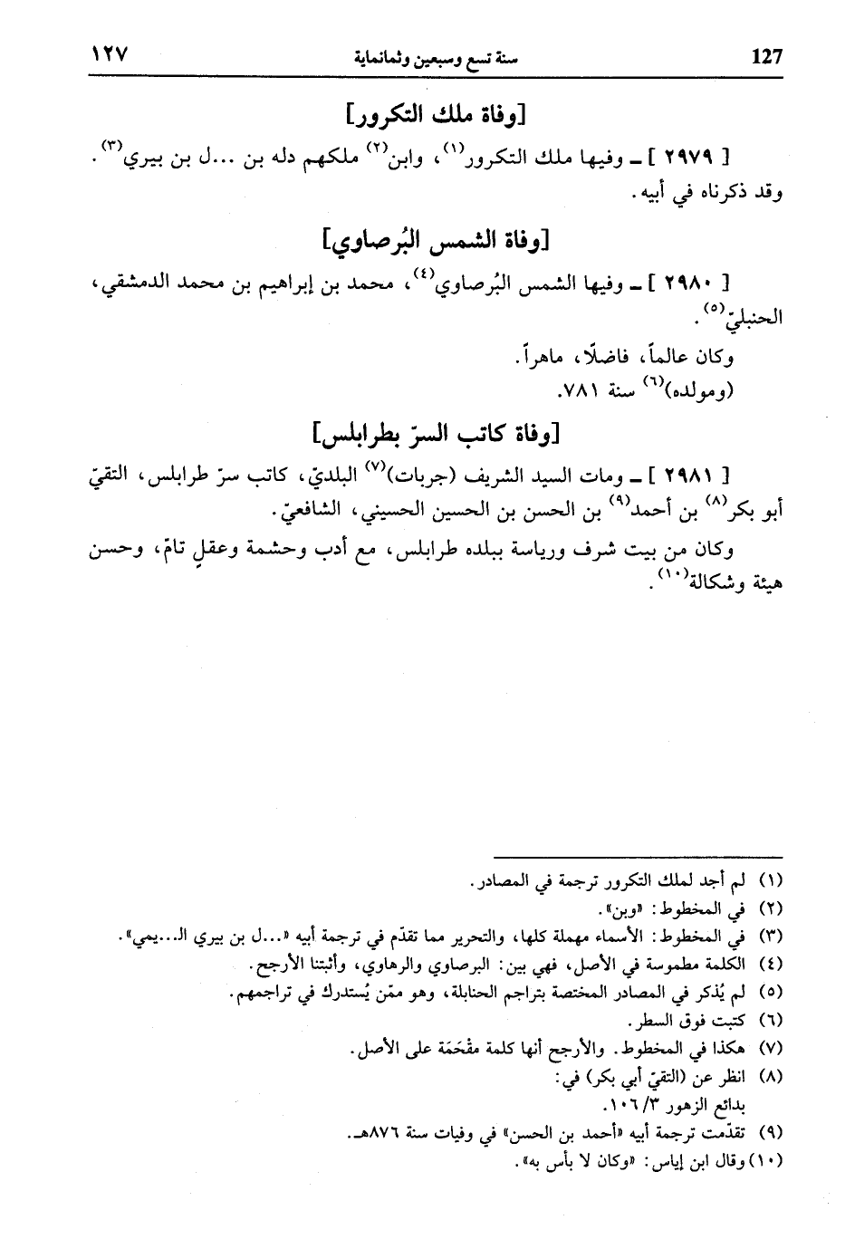 [2980]- وفيها الشمس البرصاوي (¬4)، محمد بن إبراهيم بن محمد الدمشقي، الحنبليّ (¬5).