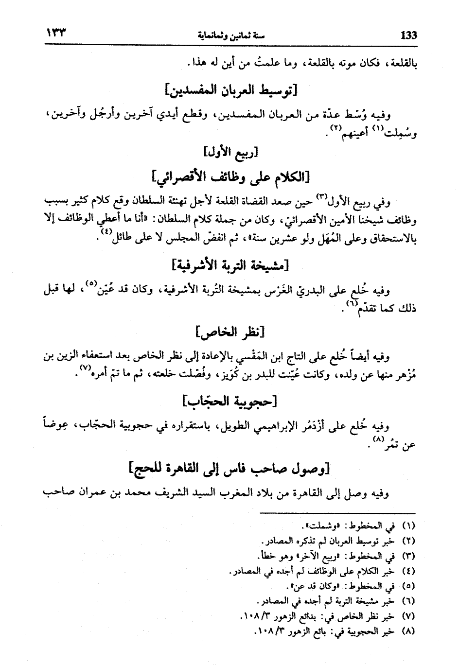 (¬7) خبر نظر الخاص في: بدائع الزهور 3/ 108.