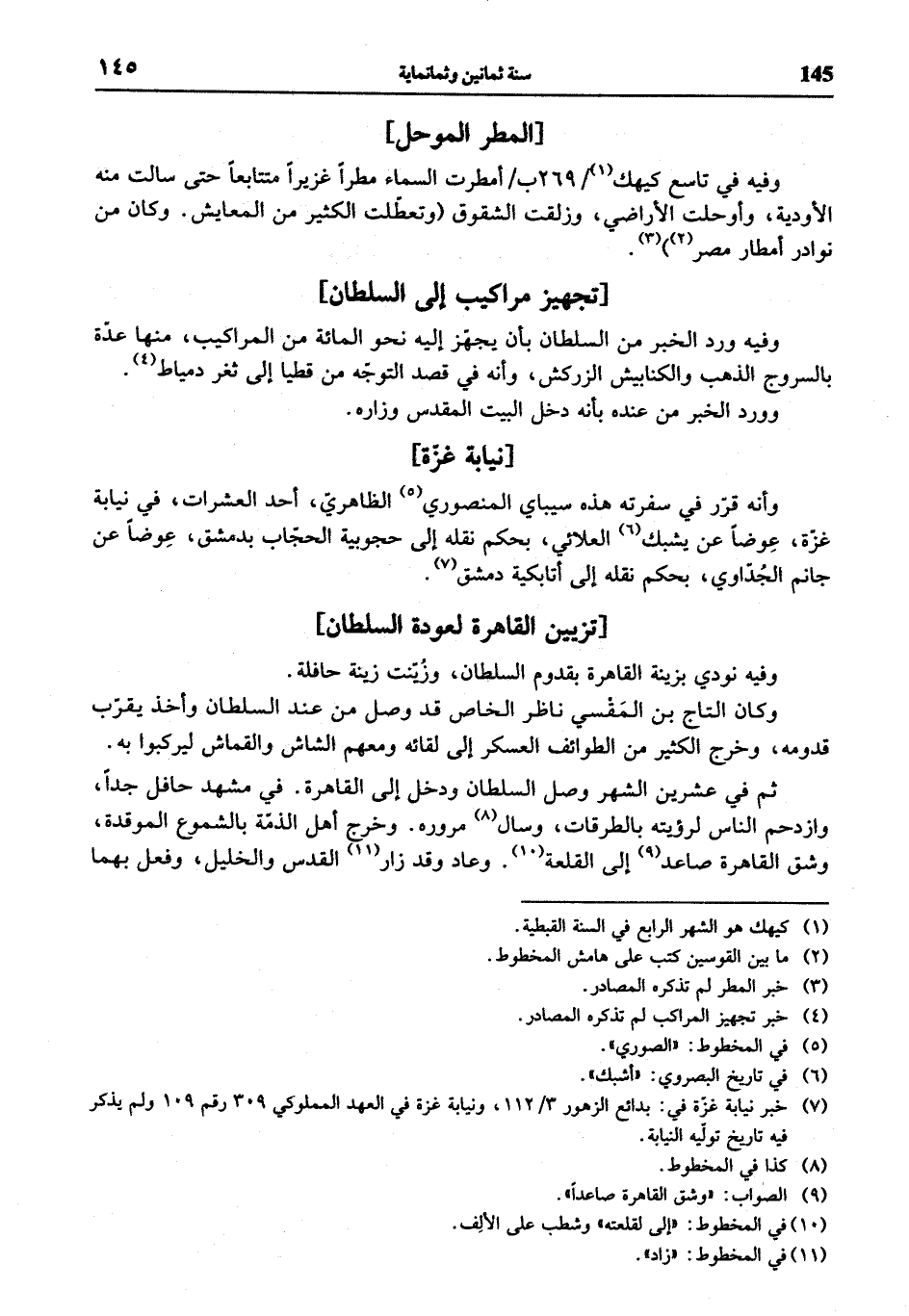 وفيه نودي بزينة القاهرة بقدوم السلطان، وزيّنت زينة حافلة.
