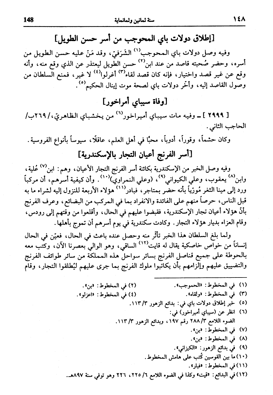 (¬5) خبر إطلاق دولات باي في: بدائع الزهور 3/ 113.