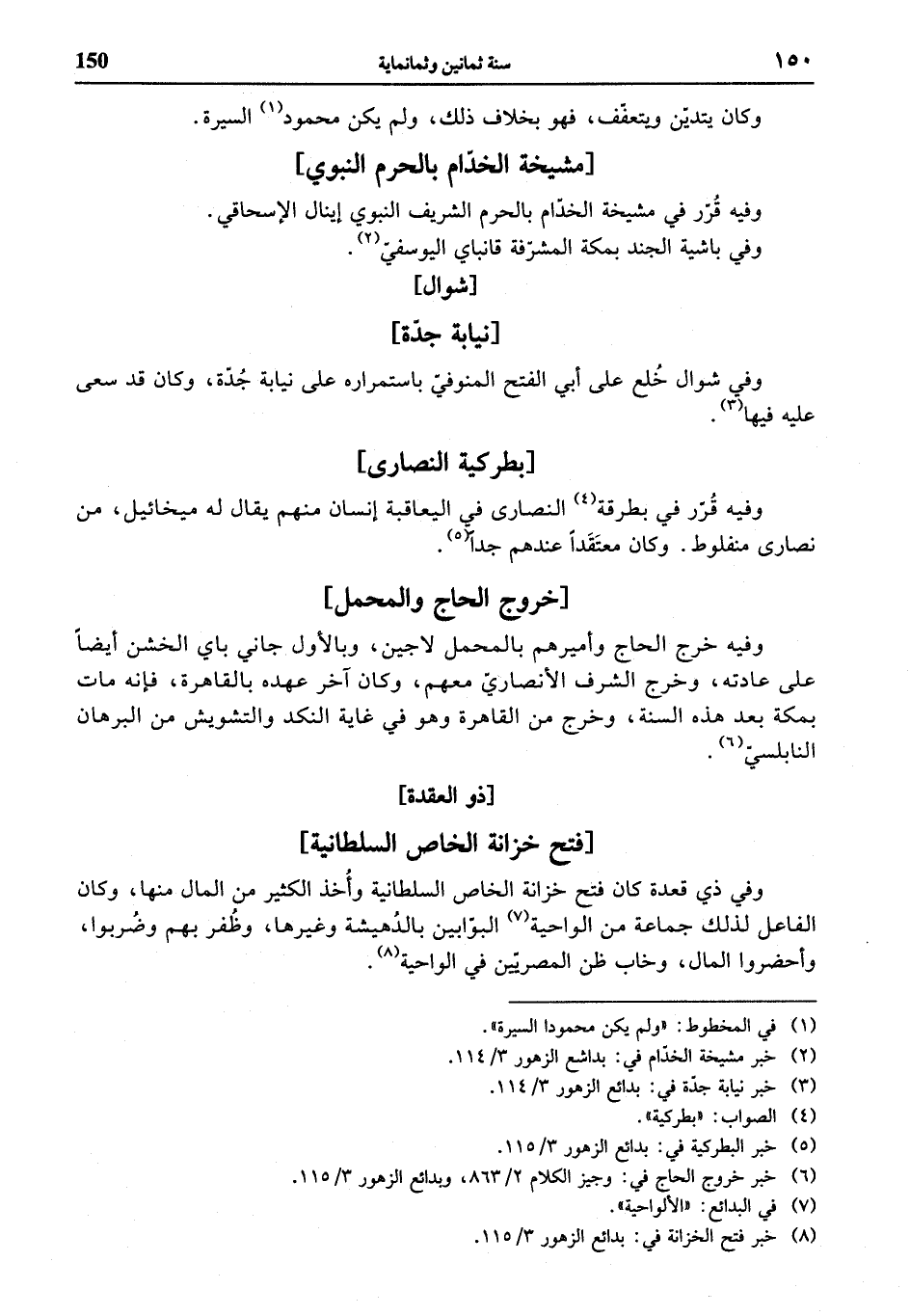 (¬5) خبر البطركية في: بدائع الزهور 3/ 115.