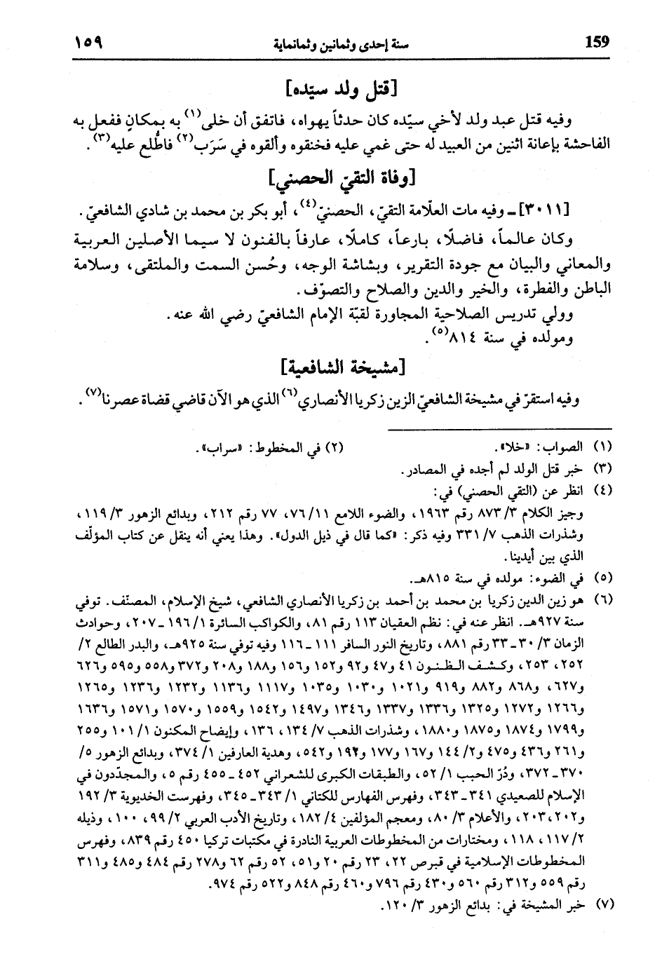 (¬4) انظر عن (التقي الحصني) في: وجيز الكلام 3/ 873 رقم 1963، والضوء اللامع 11/ 76، 77 رقم 212، وبدائع الزهور 3/ 119، وشذرات الذهب 7/ 331 وفيه ذكر: «كما قال في ذيل الدول». وهذا يعني أنه ينقل عن كتاب المؤلّف الذي بين أيدينا.