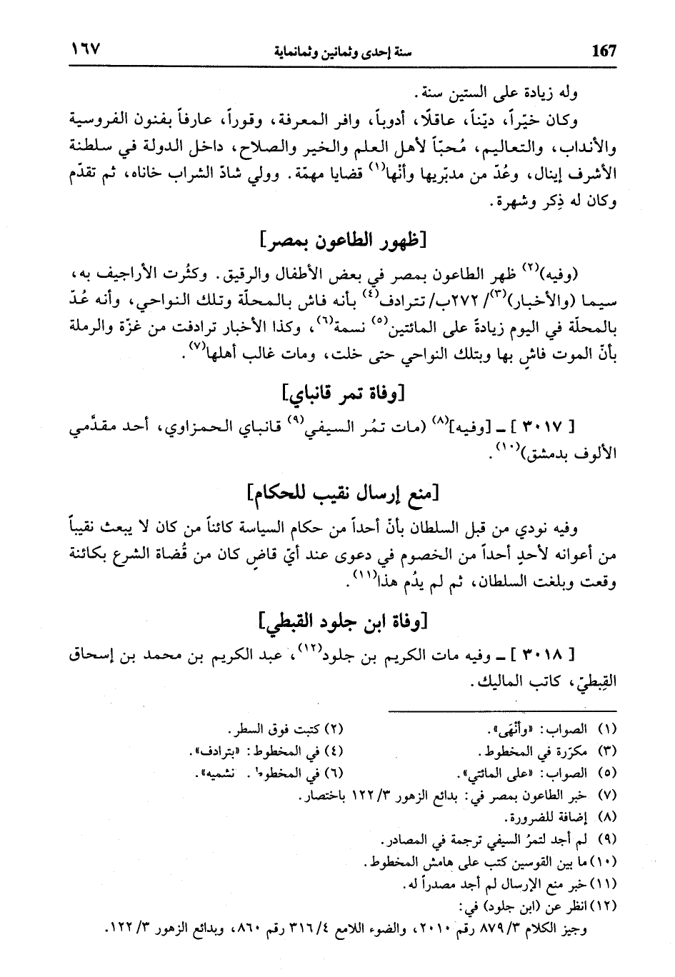 (¬7) خبر الطاعون بمصر في: بدائع الزهور 3/ 122 باختصار.