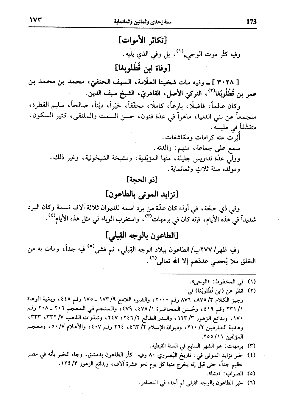 (¬6) خبر الطاعون بالوجه القبلي لم أجده في المصادر.