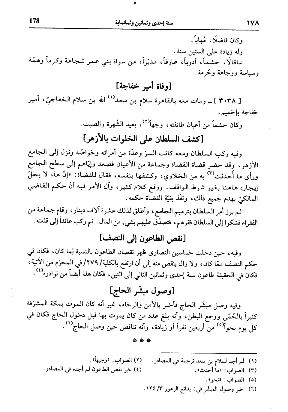 (¬4) خبر نقص الطاعون لم أجده في المصادر.