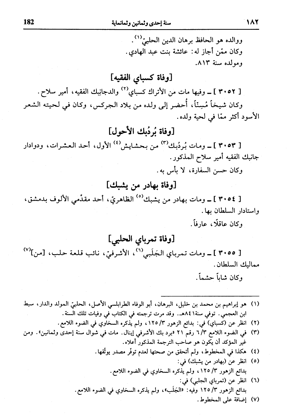 (¬1) هو إبراهيم بن محمد بن خليل، البرهان، أبو الوفاء الطرابلسي الأصل، الحلبيّ المولد والدار، سبط ابن العجمي. توفي سنة 841 هـ. وقد مرت ترجمته في الكتاب في وفيات تلك السنة.