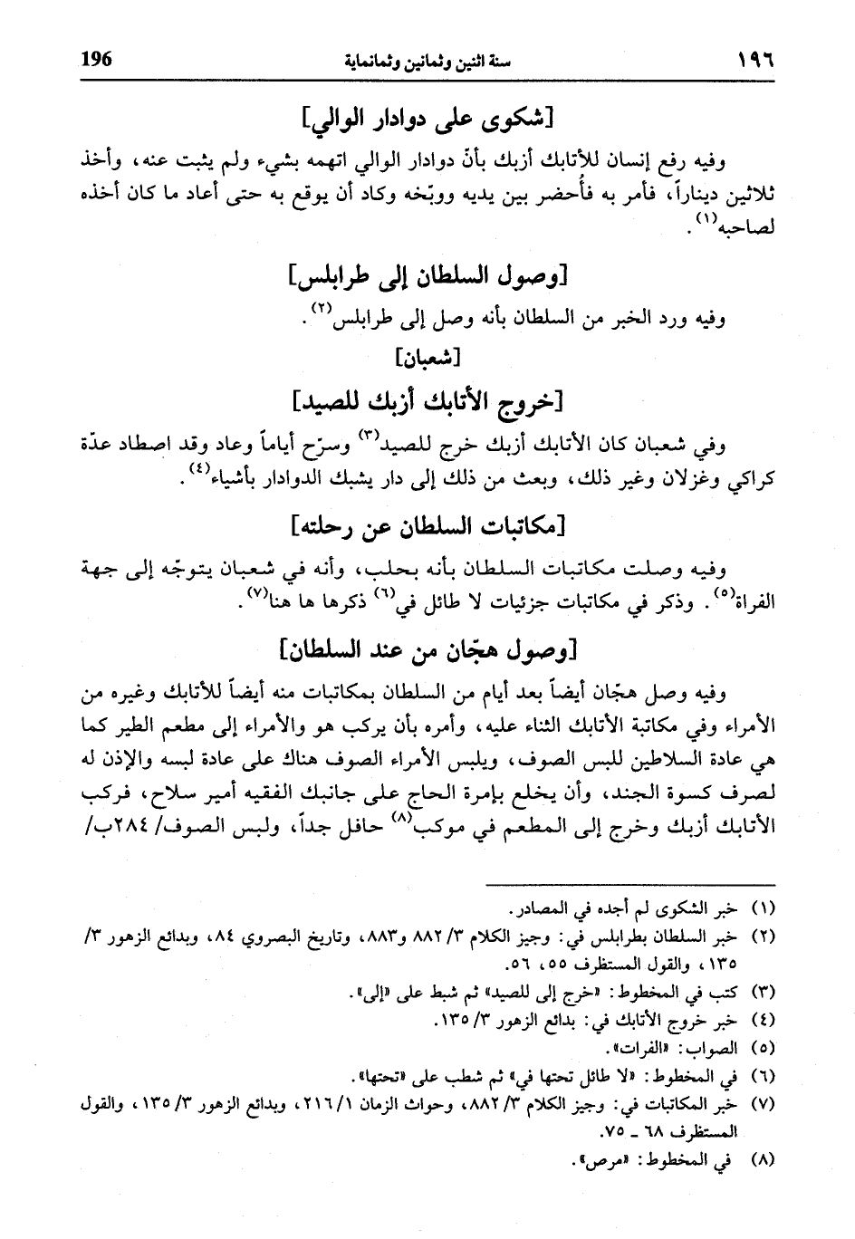 (¬2) خبر السلطان بطرابلس في: وجيز الكلام 3/ 882 و 883، وتاريخ البصروي 84، وبدائع الزهور 3/ 135، والقول المستظرف 55، 56.