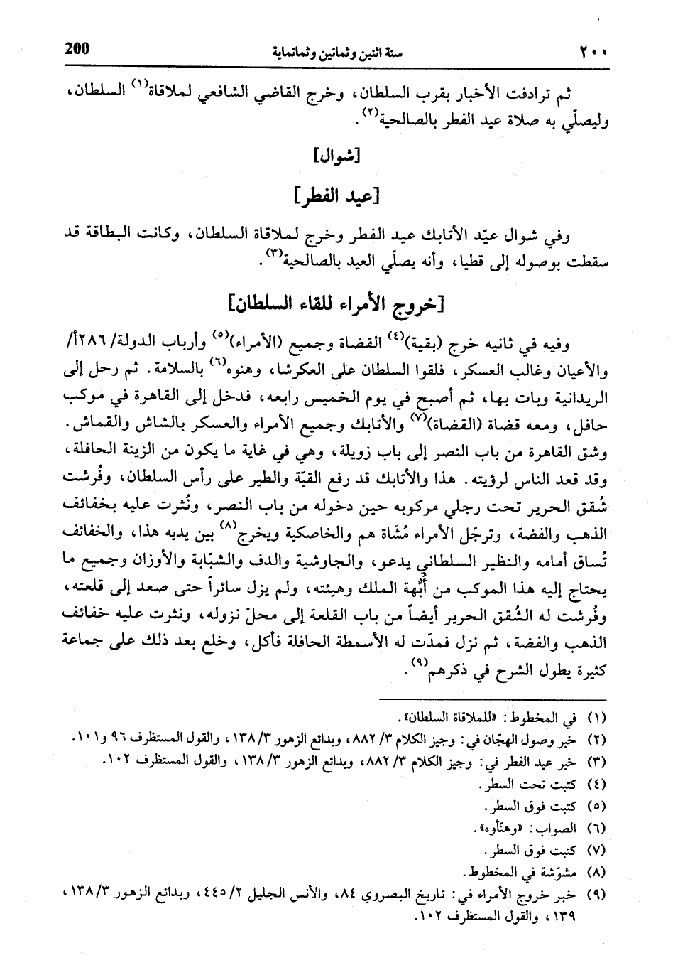 (¬3) خبر عيد الفطر في: وجيز الكلام 3/ 882، وبدائع الزهور 3/ 138، والقول المستظرف 102.