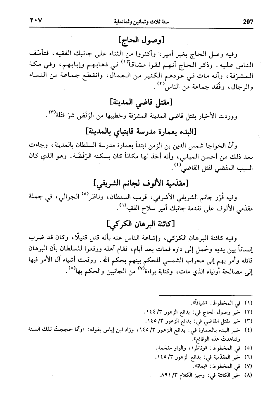 (¬3) خبر مقتل القاضي في: بدائع الزهور 3/ 145.