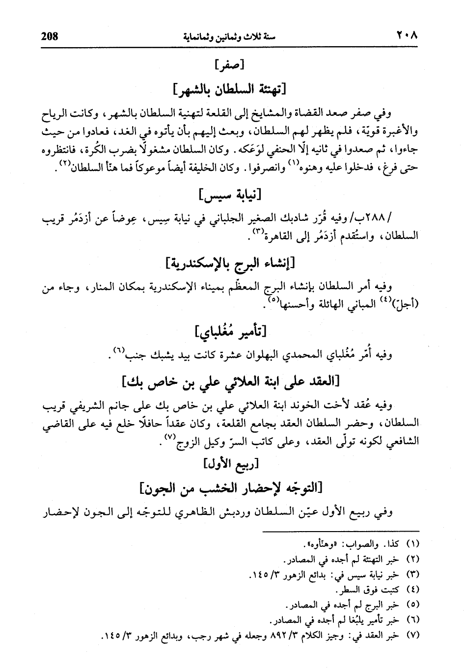 (¬6) خبر تأمير يلبغا لم أجده في المصادر.