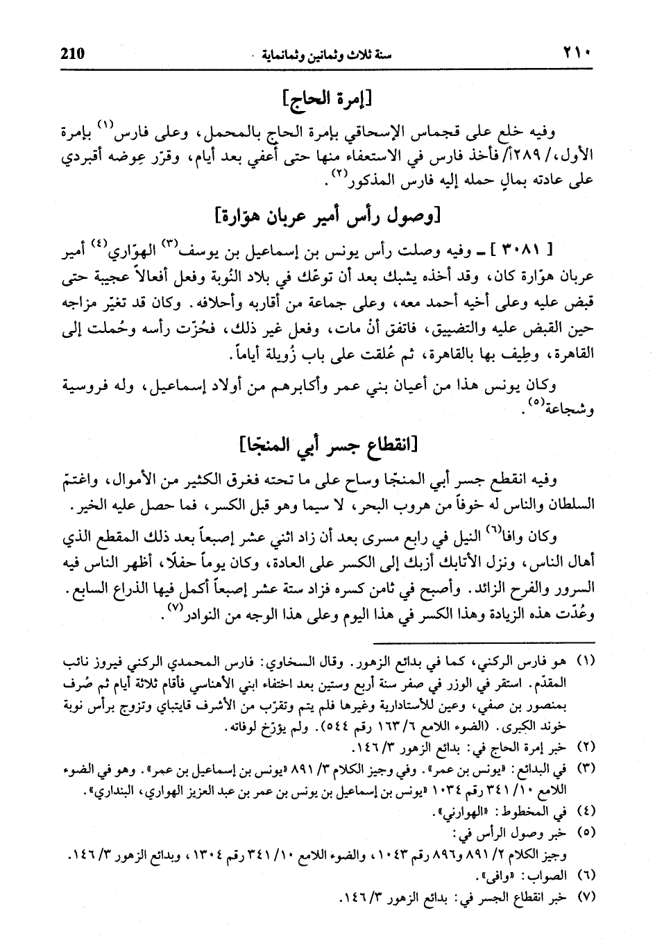 (¬7) خبر انقطاع الجسر في: بدائع الزهور 3/ 146.