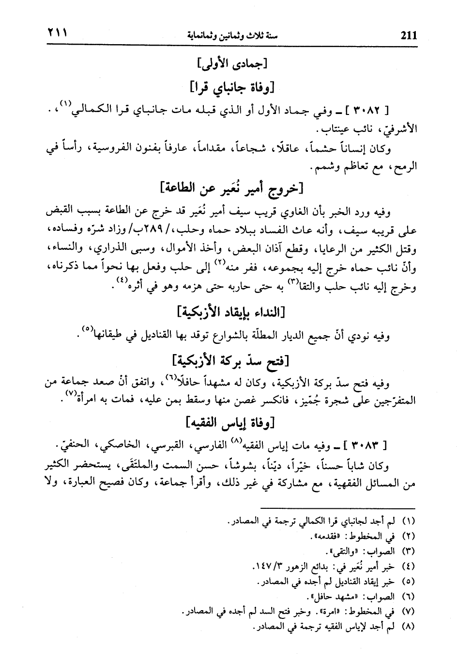 (¬4) خبر أمير نعير في: بدائع الزهور 3/ 147.