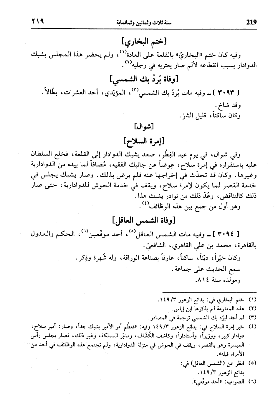 (¬5) انظر عن (الشمس العاقل) في: بدائع الزهور 3/ 149.