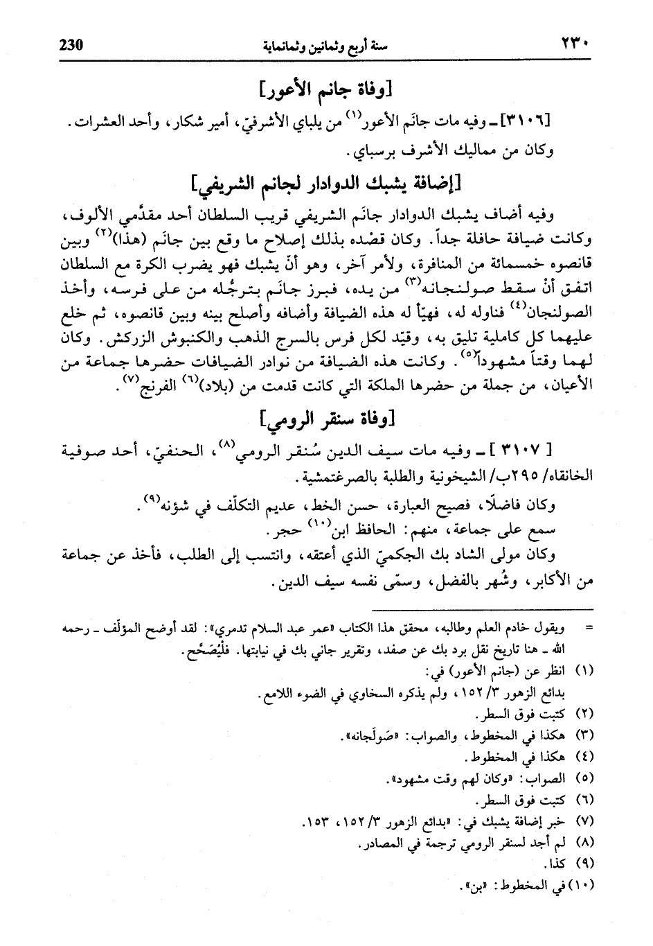 (¬1) انظر عن (جانم الأعور) في: بدائع الزهور 3/ 152، ولم يذكره السخاوي في الضوء اللامع.