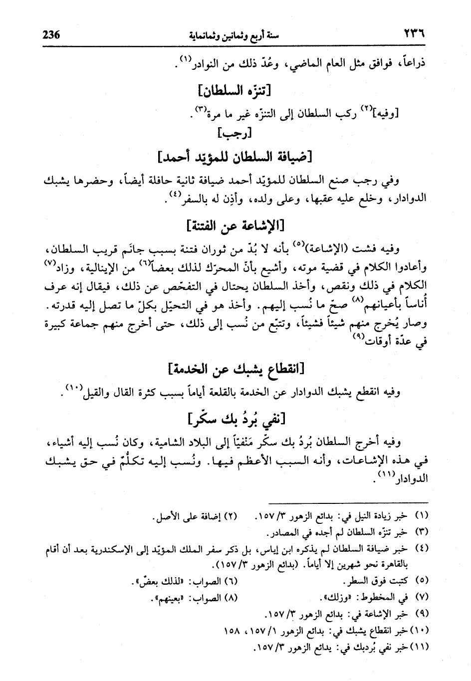 (¬10) خبر انقطاع يشبك في: بدائع الزهور 1/ 157، 158