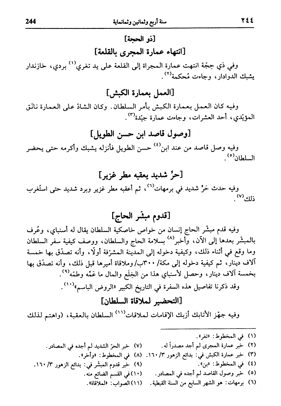 (¬3) خبر عمارة الكبش في: بدائع الزهور 3/ 160.