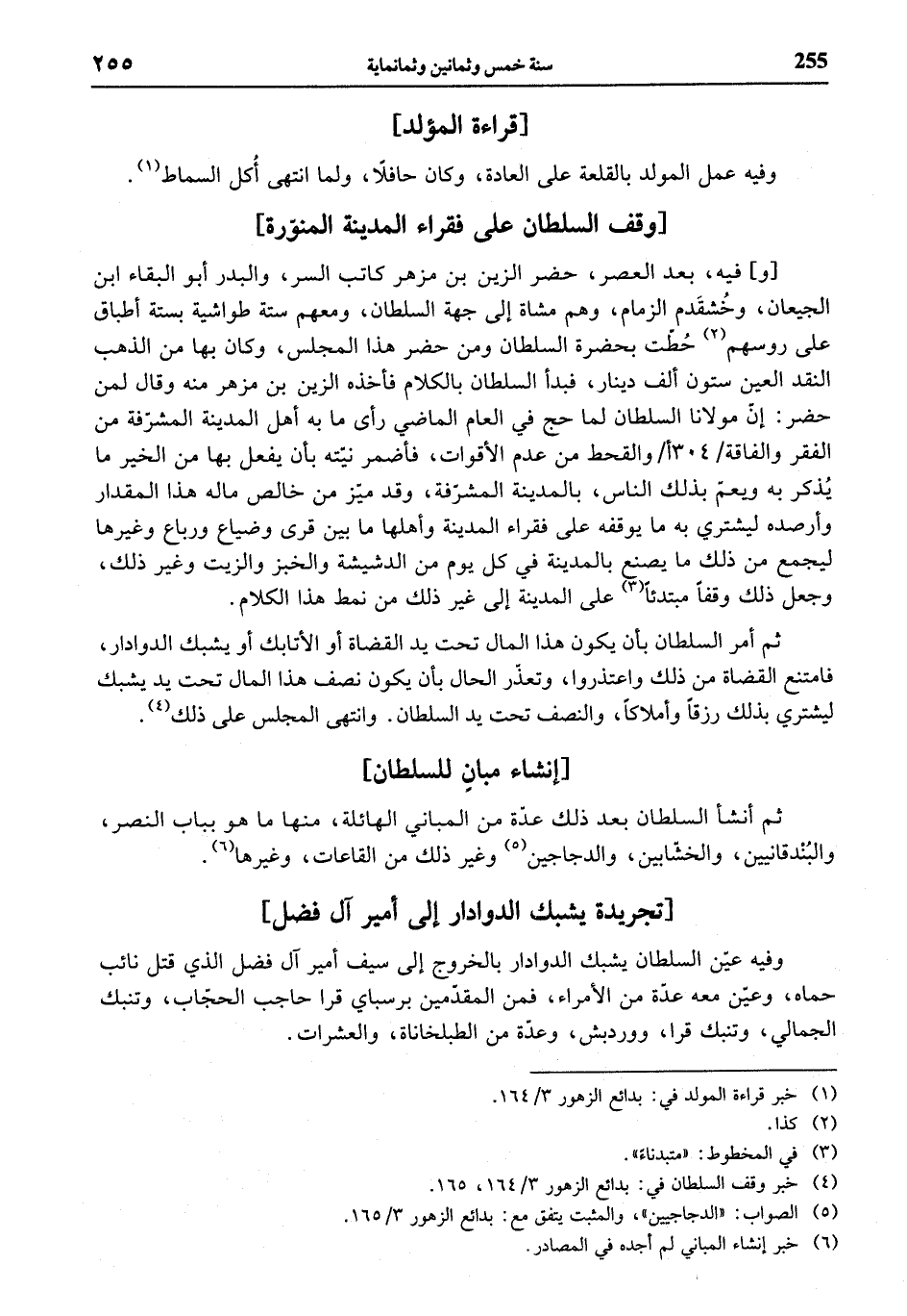 (¬4) خبر وقف السلطان في: بدائع الزهور 3/ 164، 165.