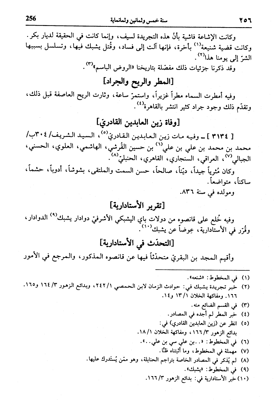 (¬5) انظر عن (زين العابدين القادري) في: بدائع الزهور 3/ 166، ومفاكهة الخلان 1/ 18.