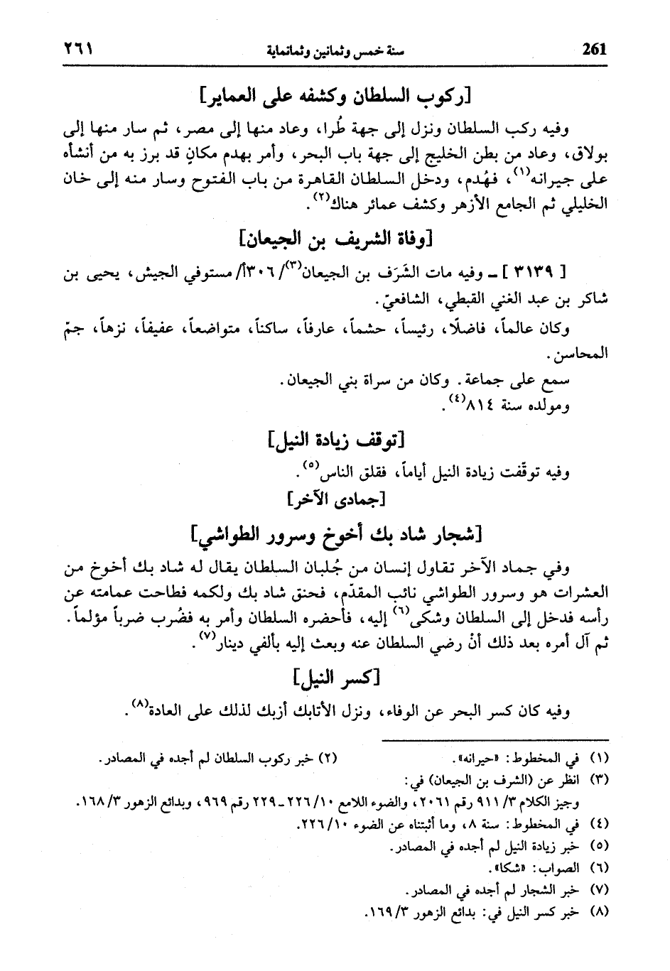(¬8) خبر كسر النيل في: بدائع الزهور 3/ 169.