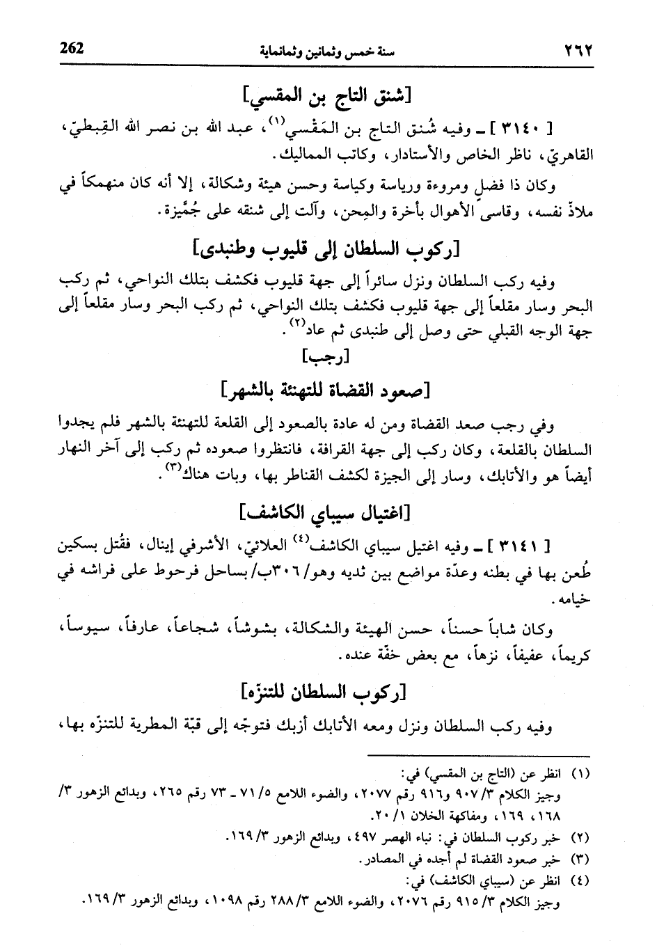 (¬4) انظر عن (سيباي الكاشف) في: وجيز الكلام 3/ 915 رقم 2076، والضوء اللامع 3/ 288 رقم 1098، وبدائع الزهور 3/ 169.