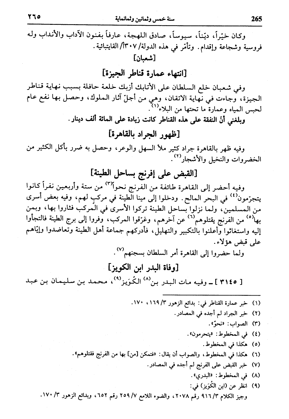 (¬1) خبر عمارة القناطر في: بدائع الزهور 3/ 169، 170.