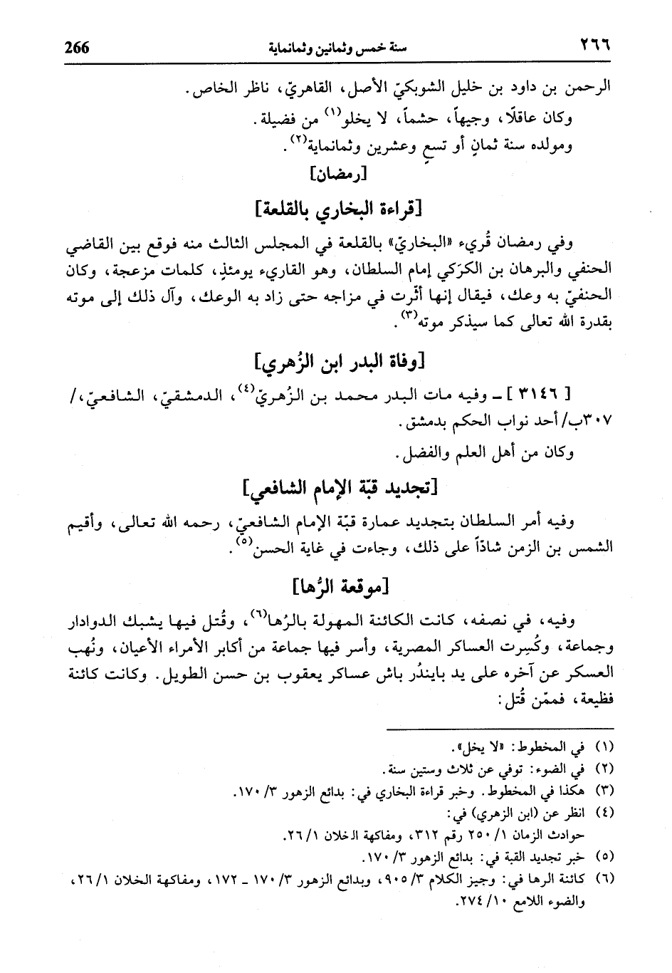(¬6) كائنة الرها في: وجيز الكلام 3/ 905، وبدائع الزهور 3/ 170 - 172، ومفاكهة الخلان 1/ 26، والضوء اللامع 10/ 274.