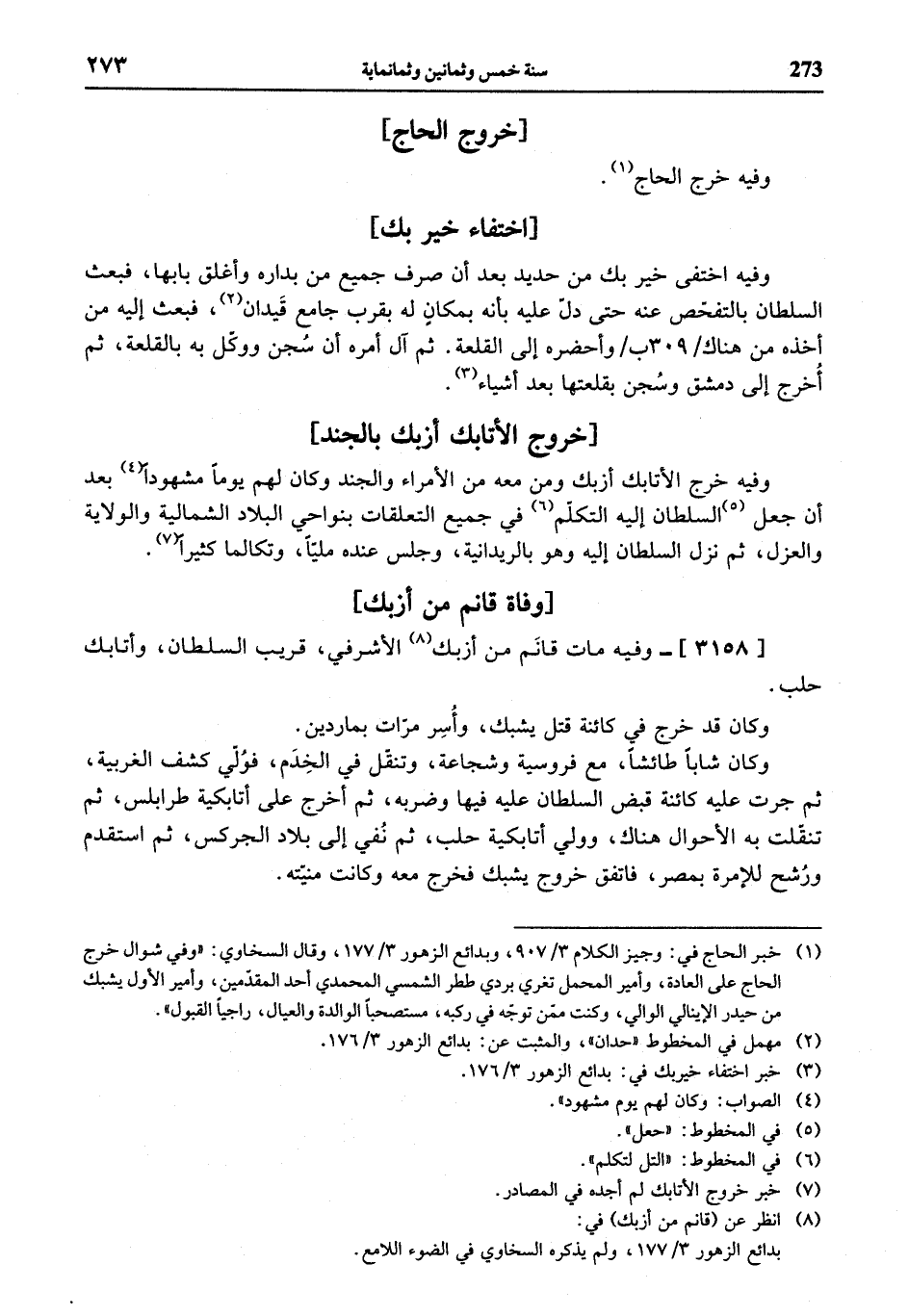 (¬8) انظر عن (قانم من أزبك) في: بدائع الزهور 3/ 177، ولم يذكره السخاوي في الضوء اللامع.