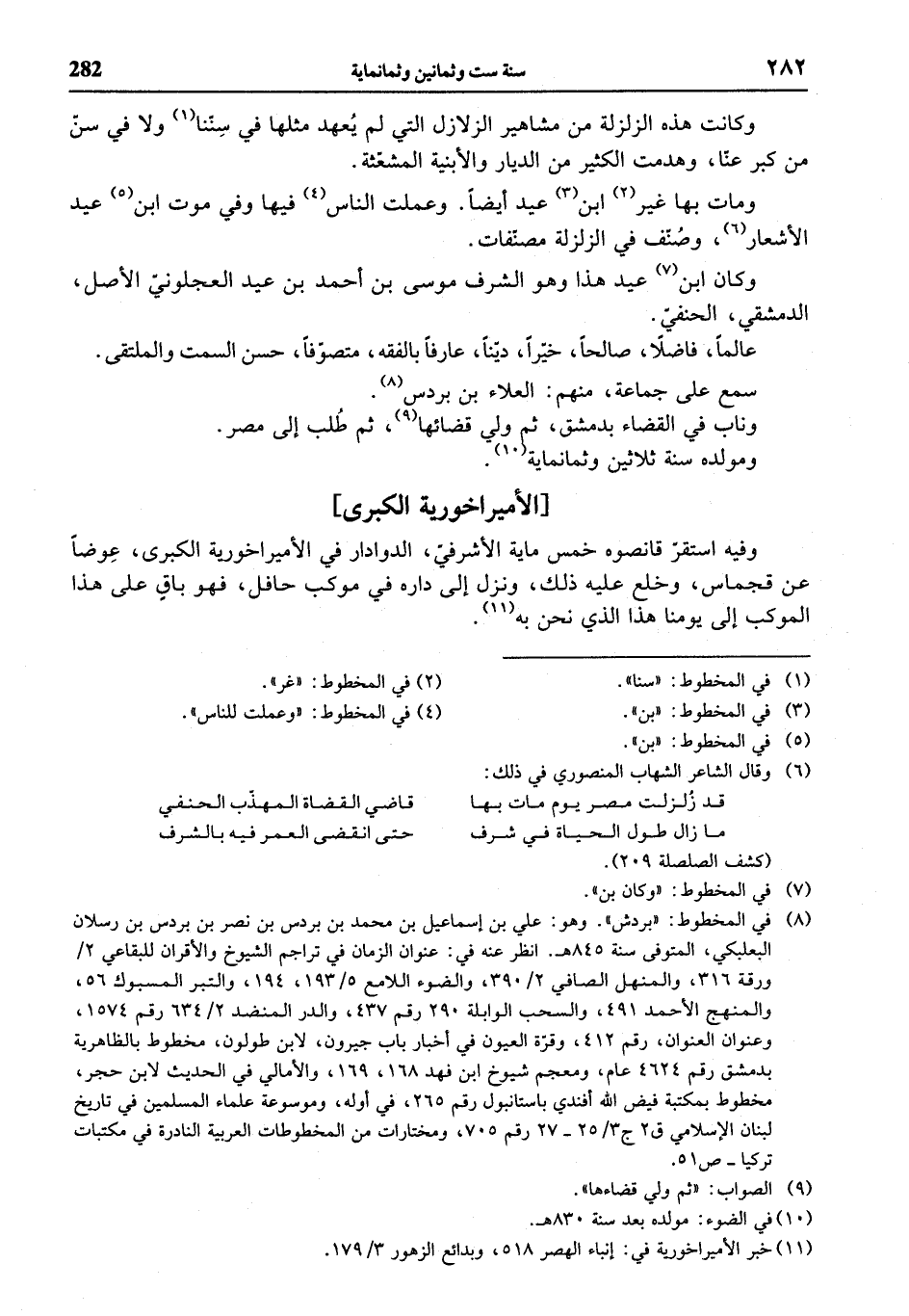 (¬11) خبر الأمير اخورية في: إنباء الهصر 518، وبدائع الزهور 3/ 179.