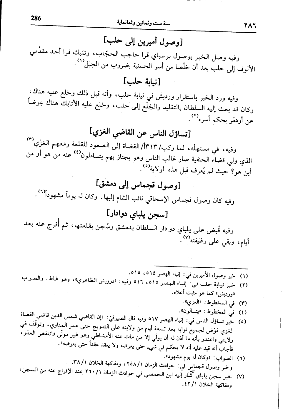 (¬2) خبر نيابة حلب في: إنباء الهصر 515، 516 وفيه: «درويش الظاهريّ»، وهو غلط. والصواب «وردبش» كما هو مثبت أعلاه.