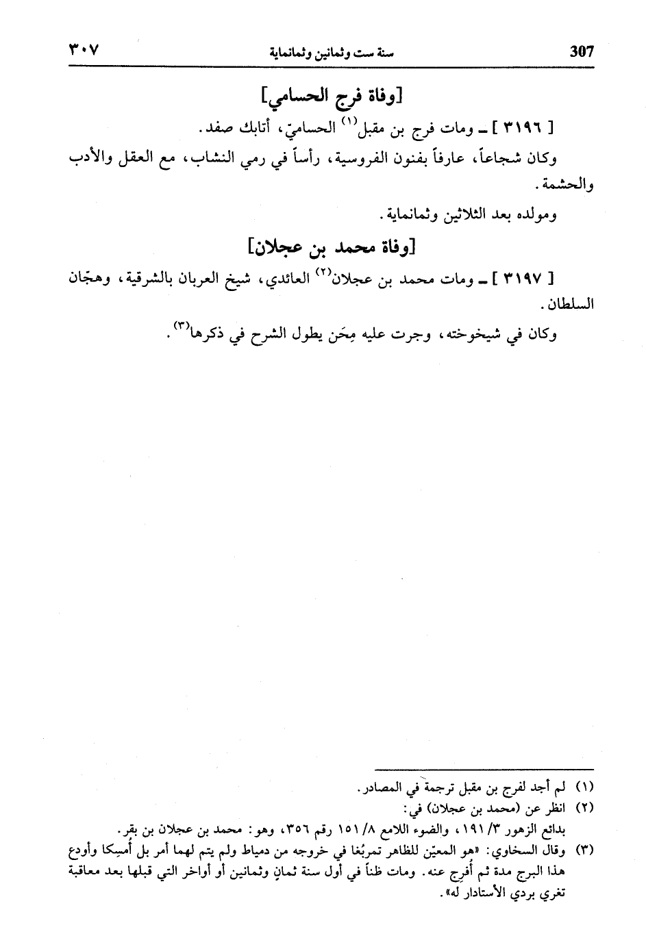 (¬2) انظر عن (محمد بن عجلان) في: بدائع الزهور 3/ 191، والضوء اللامع 8/ 151 رقم 356، وهو: محمد بن عجلان بن بقر.