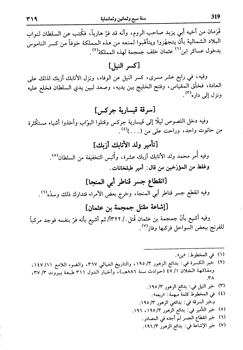 (¬7) خبر الإشاعة في: بدائع الزهور 3/ 196.