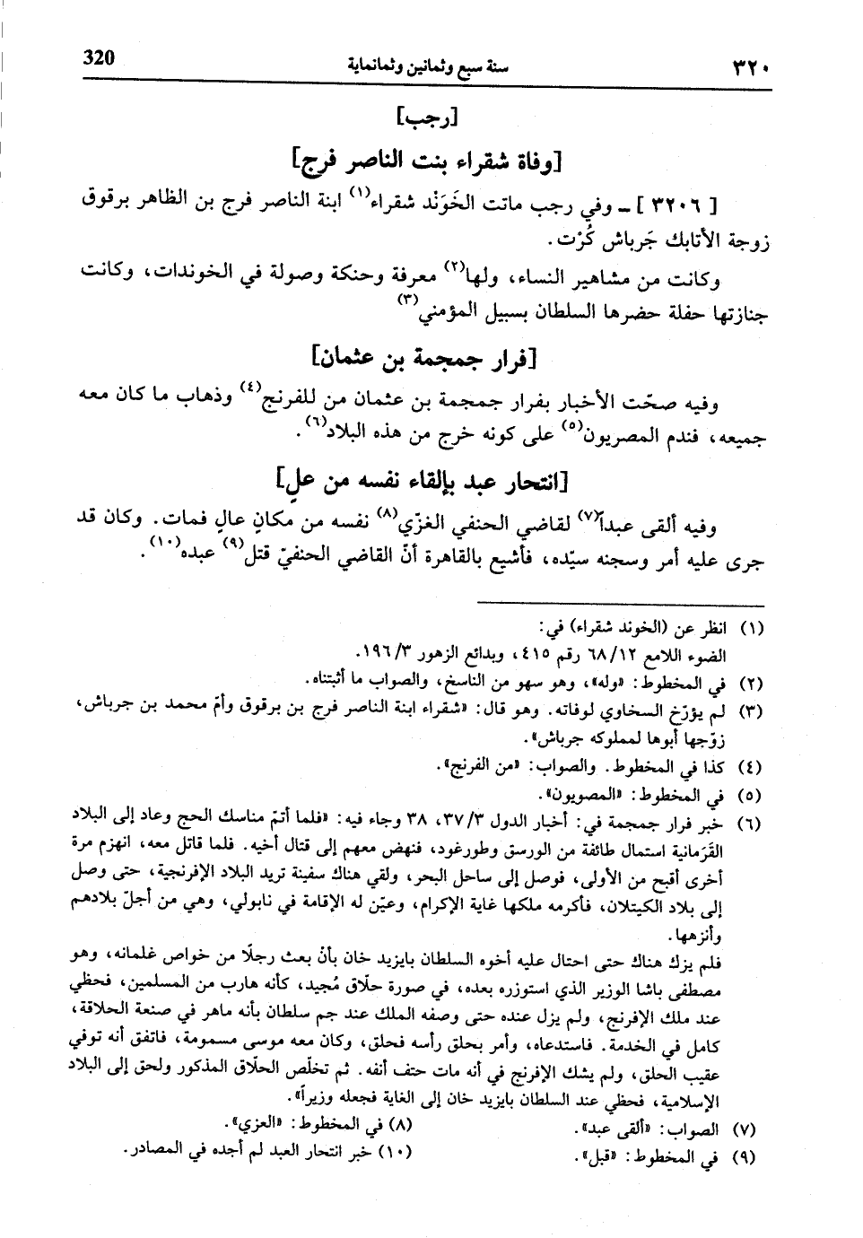 (¬10) خبر انتحار العبد لم أجده في المصادر.
