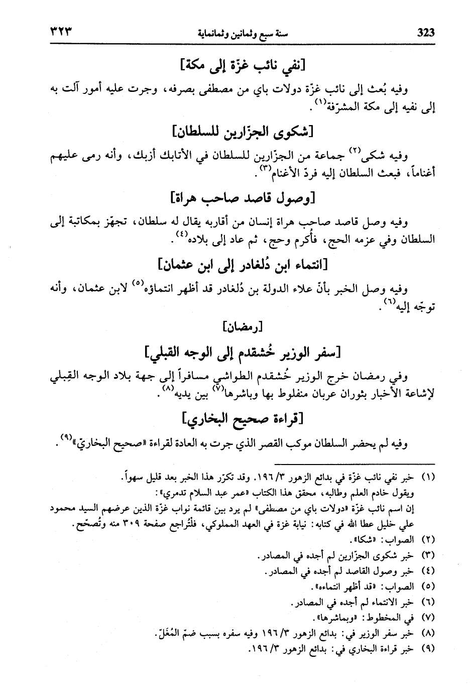 (¬9) خبر قراءة البخاري في: بدائع الزهور 3/ 196.