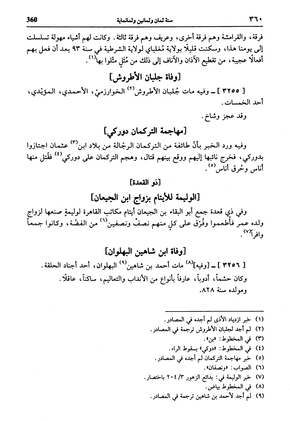 [3256]-، [وفيه] (¬8) مات أحمد بن شاهين (¬9) البهلوان، أحد أجناد الحلقة.