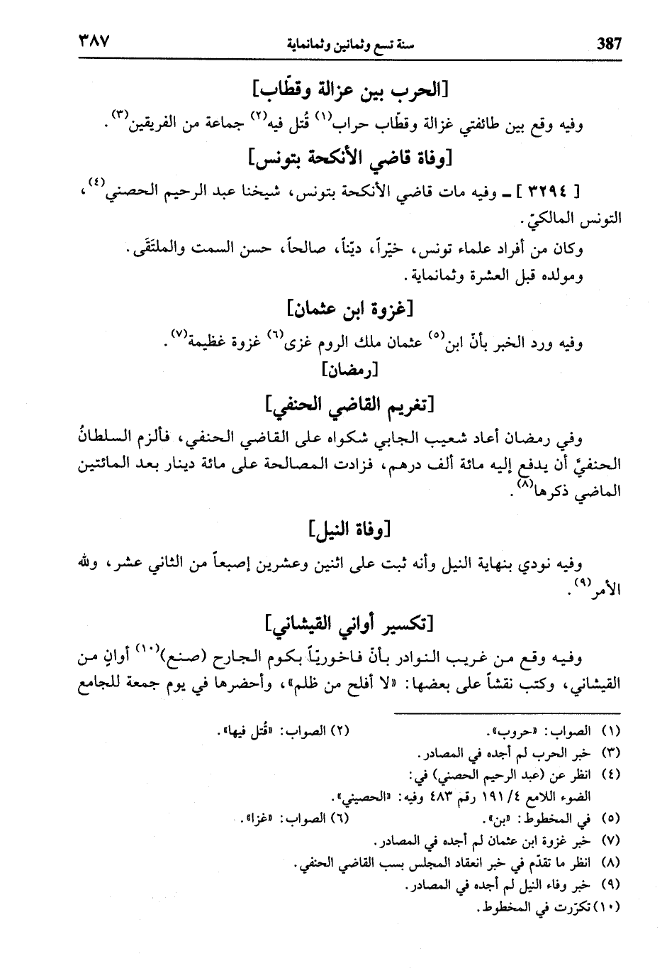 (¬9) خبر وفاء النيل لم أجده في المصادر.