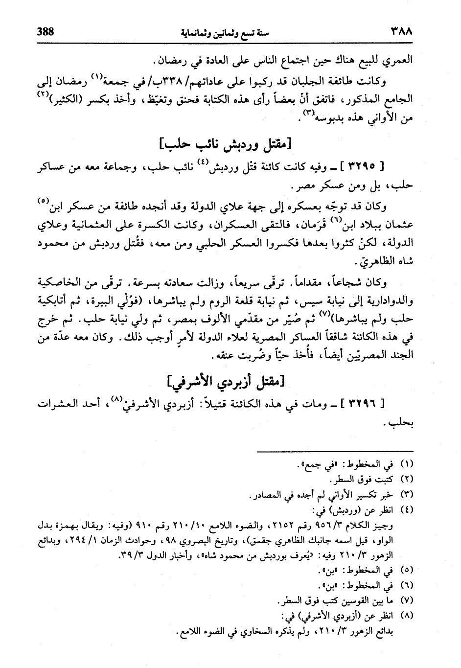 [3296]- ومات في هذه الكائنة قتيلا: أزبردي الأشرفيّ (¬8)، أحد العشرات بحلب.